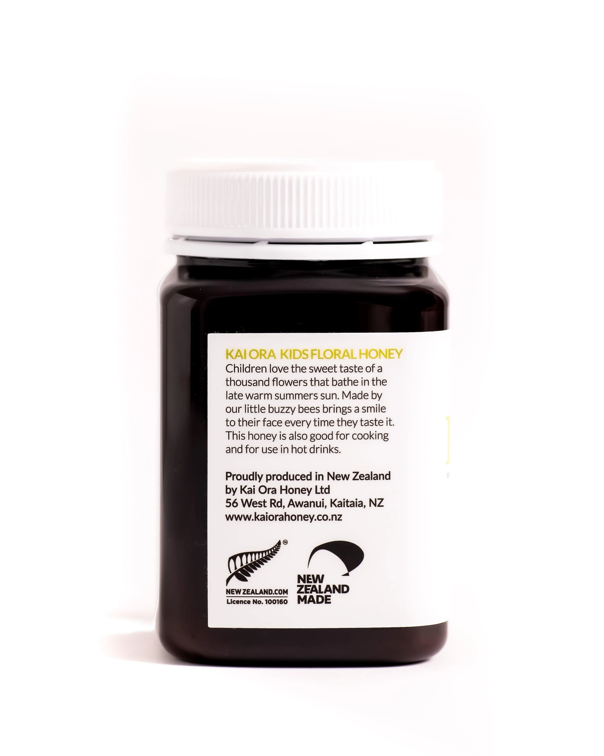 Proudly produced in New Zealand by Kai Ora Honey Ltd, 56 West Rd, Awanui, Kaitaia, NZ
